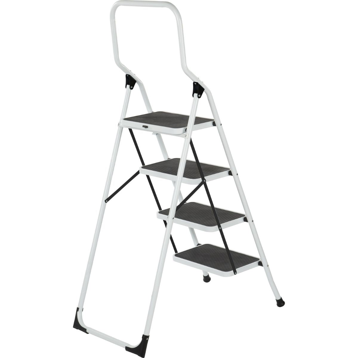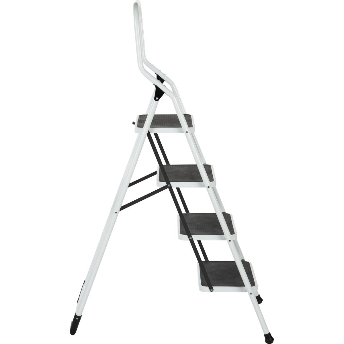 Need to clean a tall cupboard or replace a light bulb? With the Big Step four-step ladder, you can do it safely, stably, and comfortably. This sturdy ladder, made of white painted steel, is designed to offer you maximum safety and ease of use. Thanks to the extra-wide non-slip treads and the high safety bar, you can always stand with confidence and ease, even during longer jobs.