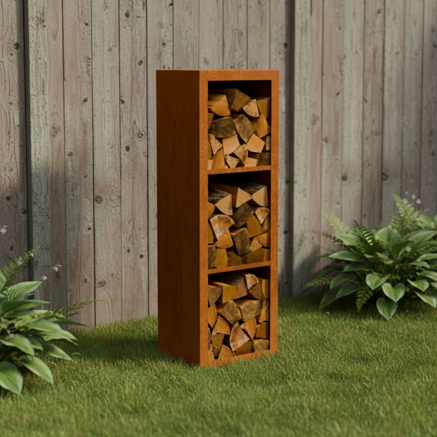 This wood storage is specially designed with multiple drainage holes for optimal water drainage, which ensures that the wood does not rot. The combination of wood and corten steel creates a natural color combination, perfectly fitting in both modern and classic gardens. In addition, the wood storage is completely ecological and resistant to UV radiation and frost.