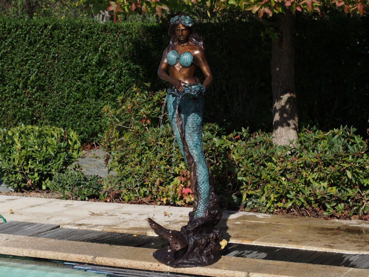 Bronzen beeld Mermaid with shell fountain 173x55x72cm 48kg