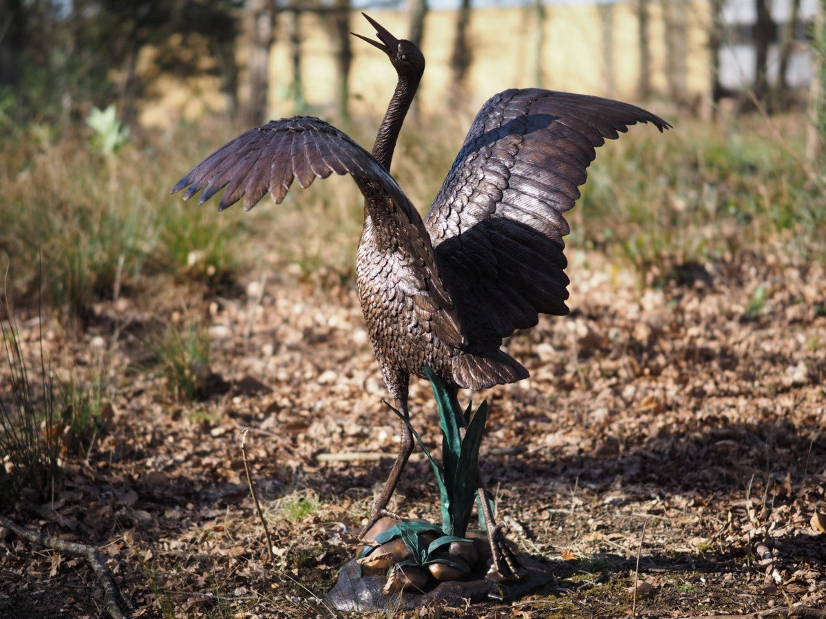 Bronzen beeld Reiger (fontein) 130x47x127cm