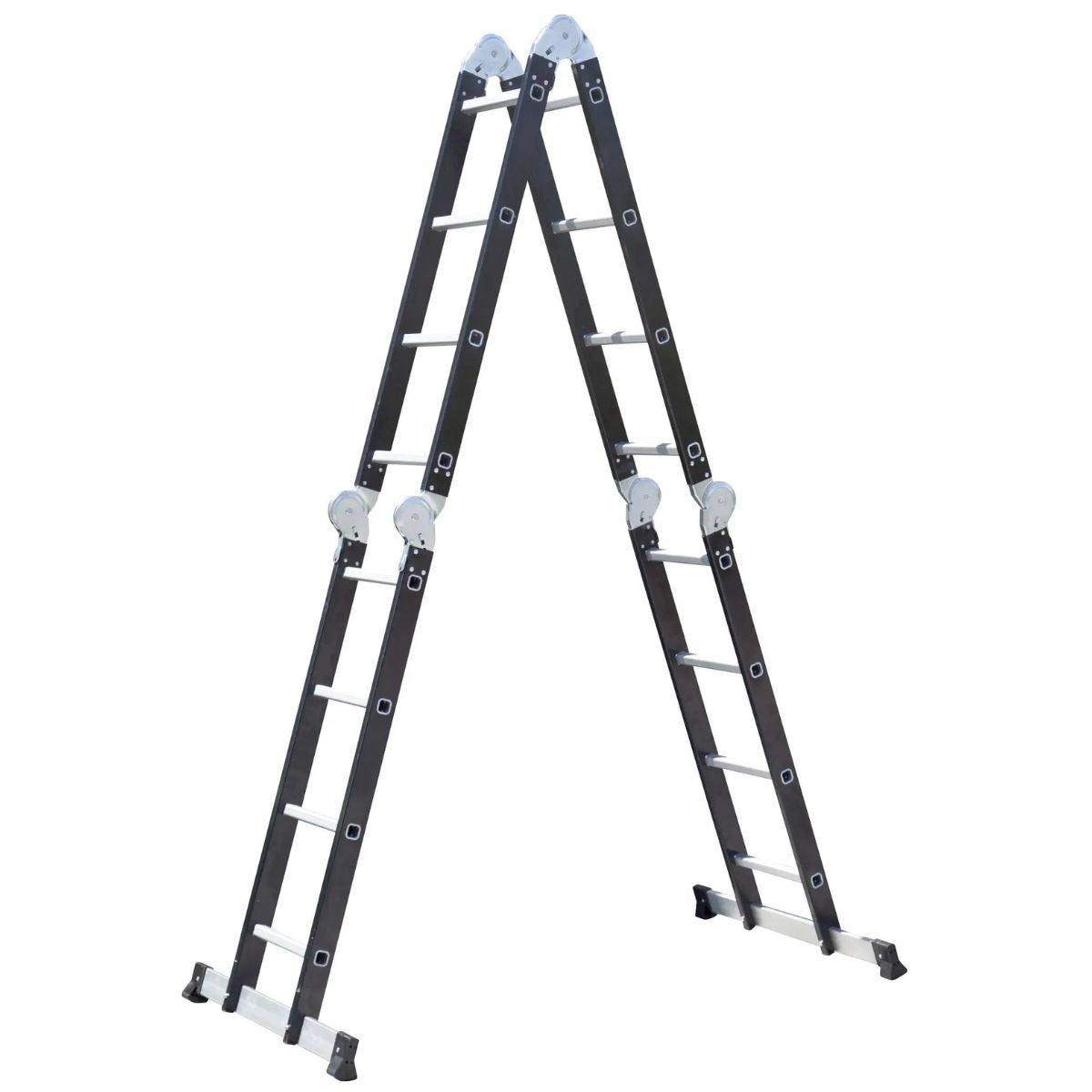 De vouwladder Multifold 2-in-1 van Escalo is een multifunctionele en compacte oplossing voor klussen in en rond het huis. Dankzij de zes automatisch vergrendelende scharnieren kan deze vierdelige ladder veilig in A-stand of als rechte ladder gebruikt worden. Voorzien van twee brede stabiliteitsbalken met antislipvoeten biedt de Multifold altijd optimale stabiliteit en veiligheid. Het zwarte geanodiseerde aluminium voorkomt vuile handen en corrosie, terwijl het inklapbare ontwerp zorgt dat de ladder eenvoudig op te bergen en te vervoeren is.