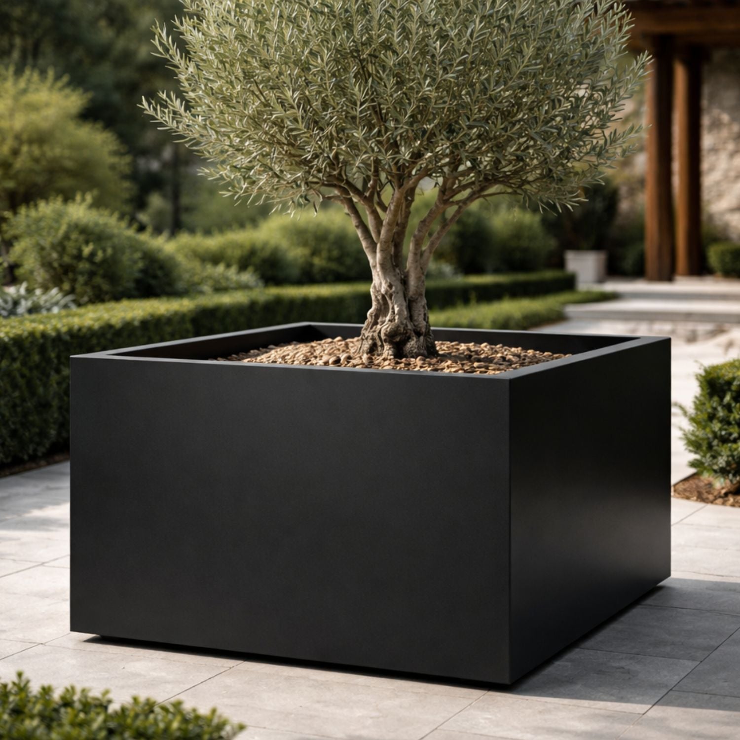 Vierkante aluminium plantenbak 120x120x80 cm - Gitzwart (RAL 9005)