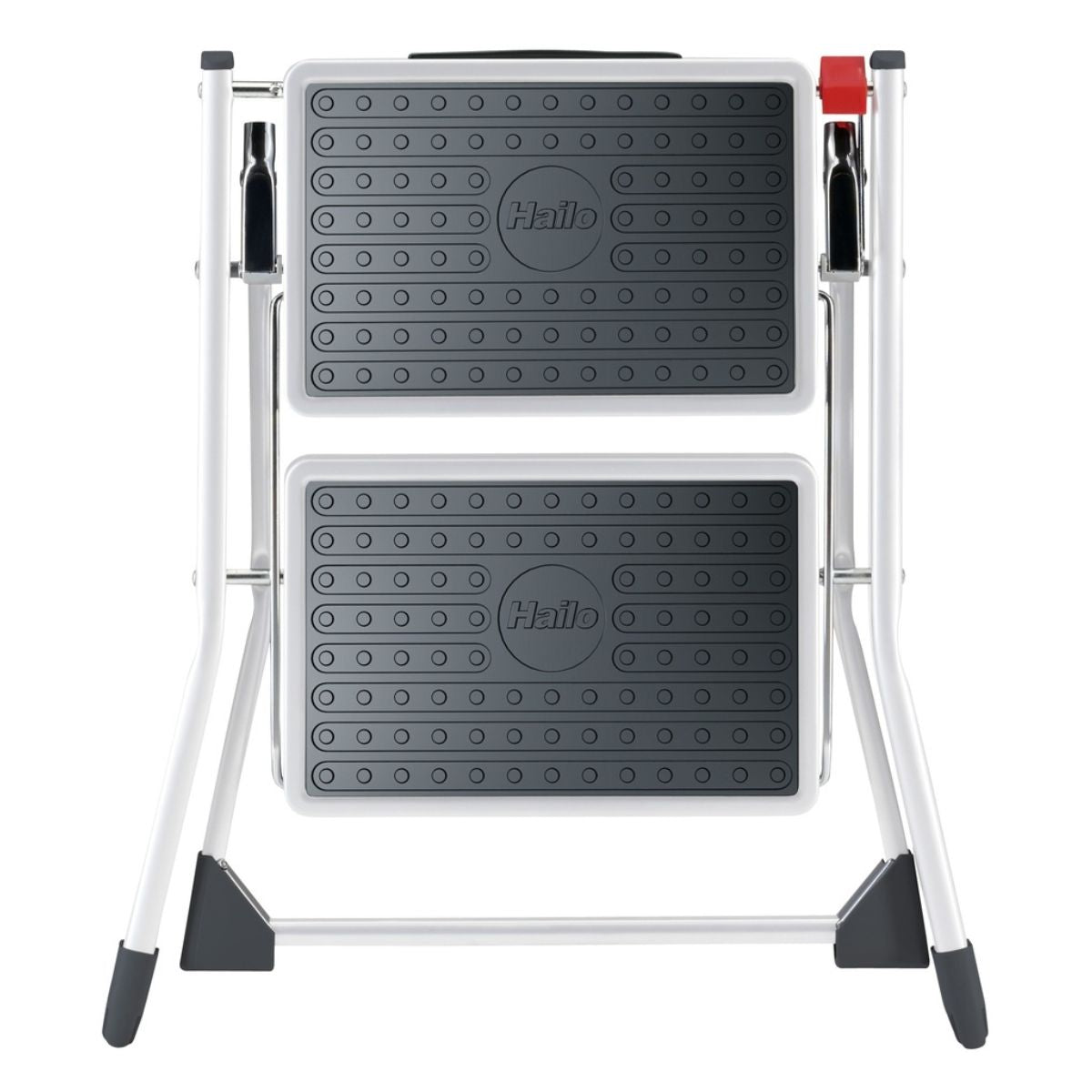 İki geniş basamak, optimum tutuş için kaymaz paspaslarla donatılmıştır. Sağlam plastik ayaklar ve pratik tutamak ile birleştiğinde, istikrarlı ve güvenli bir şekilde çalışabilirsiniz.