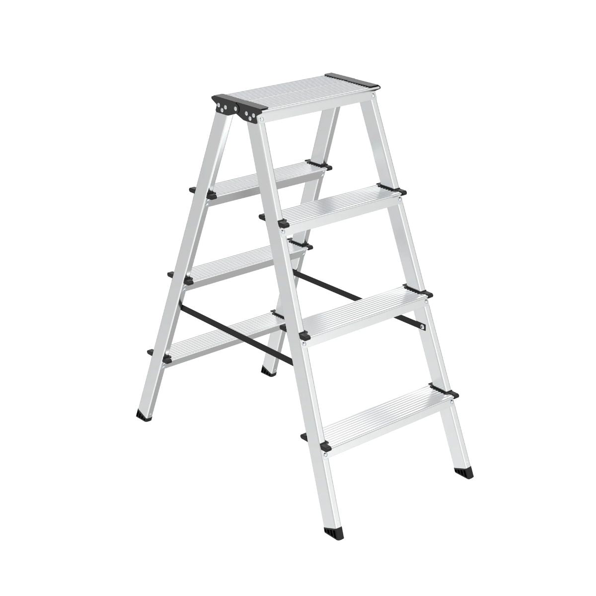 Met 4 treden aan beide zijden sta je altijd stevig en stabiel. De trap heeft een maximale draagkracht van 150 kg, waardoor hij betrouwbaar is bij allerlei werkzaamheden.